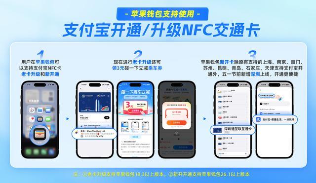 支付宝昨晚还宣布,深圳的 iPhone 用户也能直接在苹果钱包用支付宝开通 NFC 交通卡。
